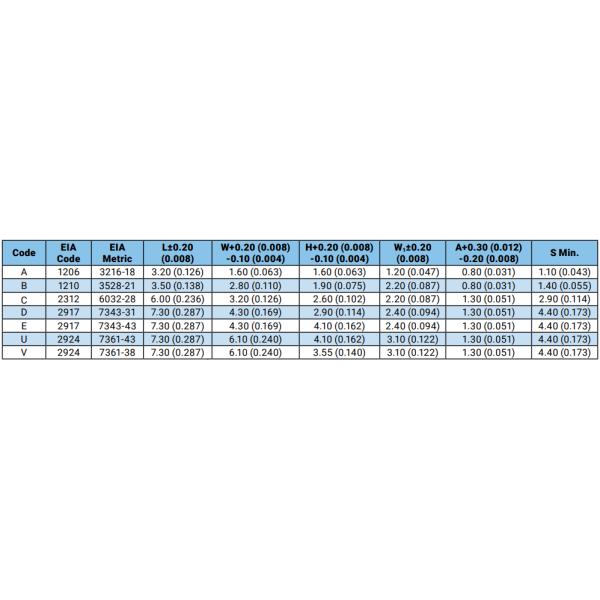 Description : Tantalum Capacitors - Solid SMD 35V 2.2uF 10% 1206 ESR= 18 Ohm